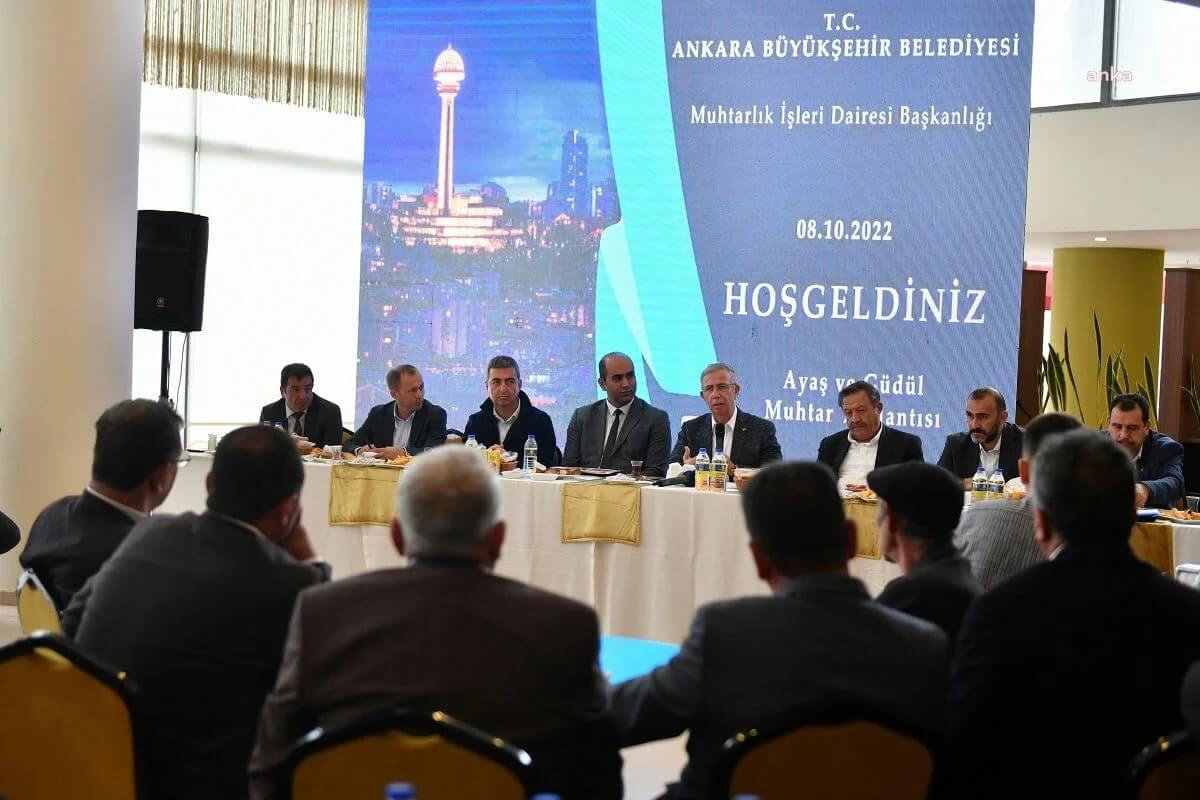 ABB Başkanı Mansur Yavaş, cumartesi günü Başkentli muhtarlarla görüştü. Önce Ayaş’ta Ayaşlı ve Güdüllü muhtarlar ile bir araya gelen Yavaş, daha sonra Kızılcahamam Şifa Termal Sosyal Tesisi’nde on ikincisi düzenlenen “Muhtarlar Müzakere Ediyor” programında Nallıhan ilçesi muhtarları ile buluştu.