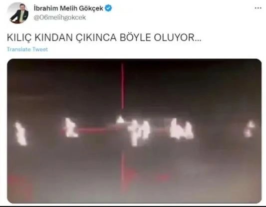 Gökçek Twitter’dan bu defa da Kuzey Suriye’ye yönelik hava saldırısına atıfla “Kılıç kınından çıkınca böyle oluyor” notuyla bir video yayınladı. Videoda öldürülen kişileri PKK’lı sanan Gökçek’e bunun bir oyun videosu olduğu hatırlatıldı.