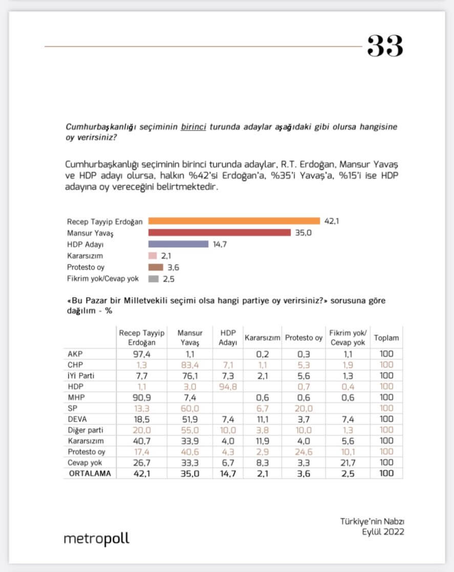 Bu durum son olarak MetroPOLL Araştırma Şirketi tarafından yapılan ‘Türkiye’nin Nabzı – Eylül 2022’ anketinde ortaya kondu.