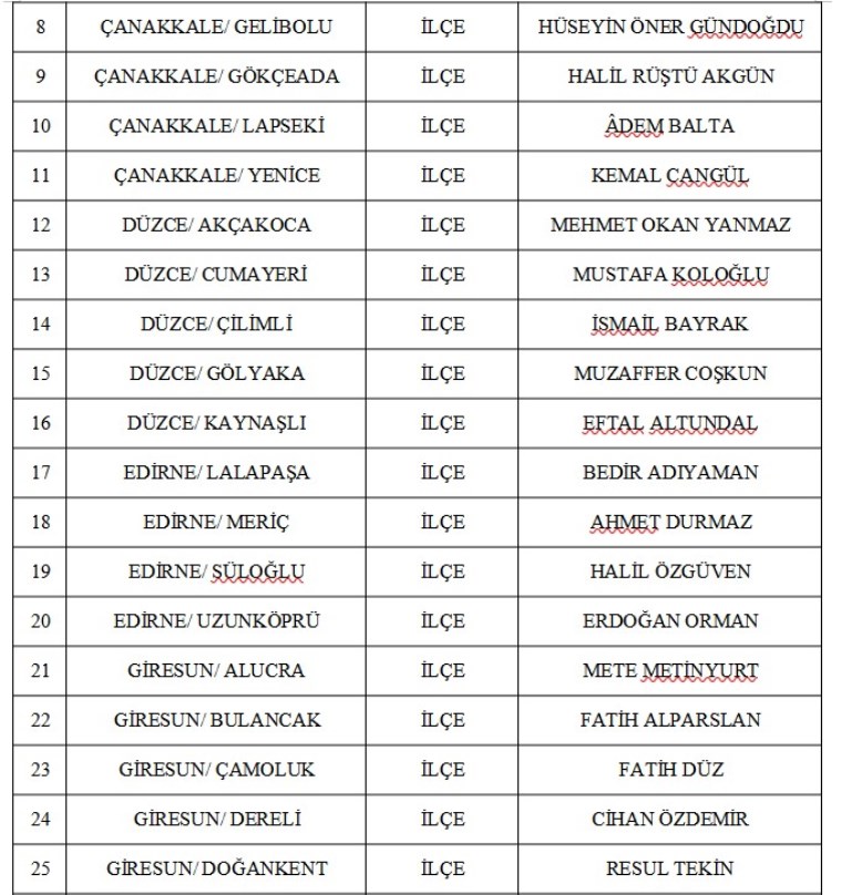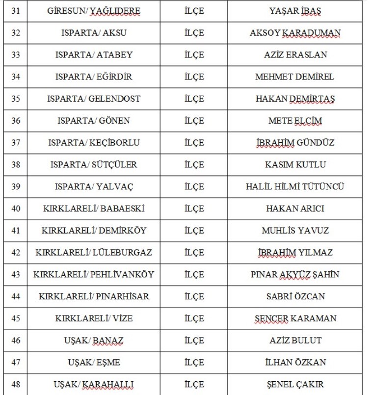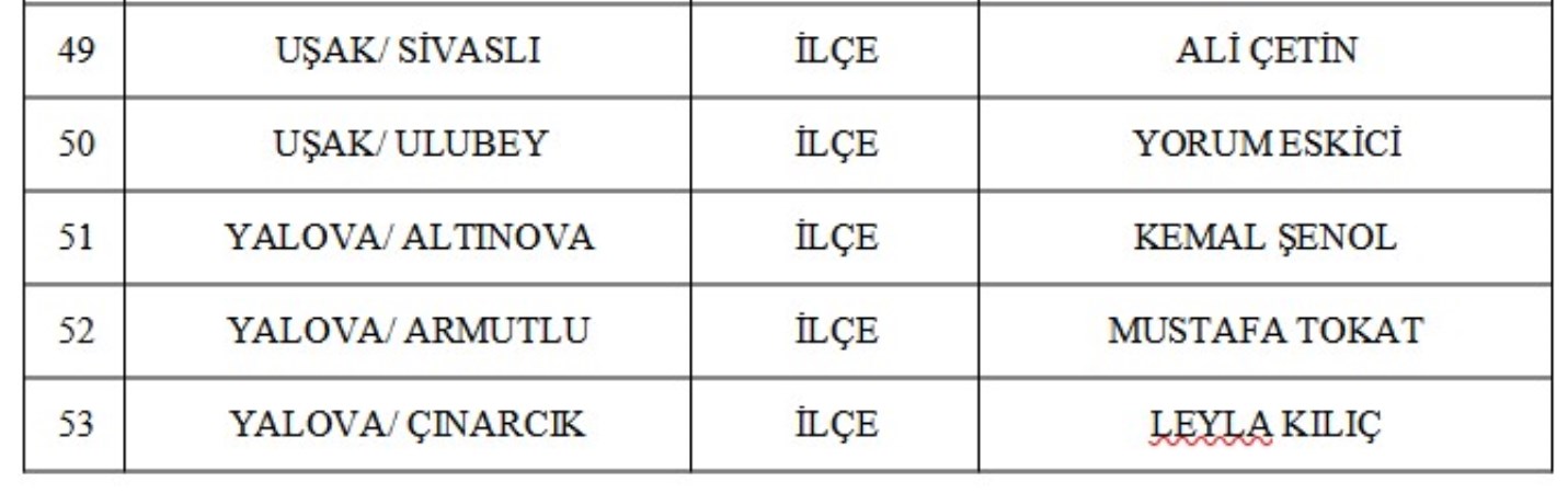 2024 yılı partinin 55’inci kuruluş yıl dönümü olduğu için her gün 55 belediye başkan adayını açıklayan MHP’nin yeni adayları şu şekilde: