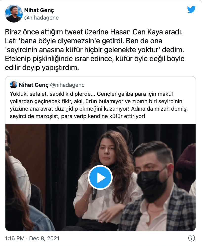 Söz konusu programla ilgili tartışmalar, gazeteci Nihat Genç’in Hasan Can Kaya’yı izleyicilere küfretmesi sebebiyle eleştirmesiyle başladı.