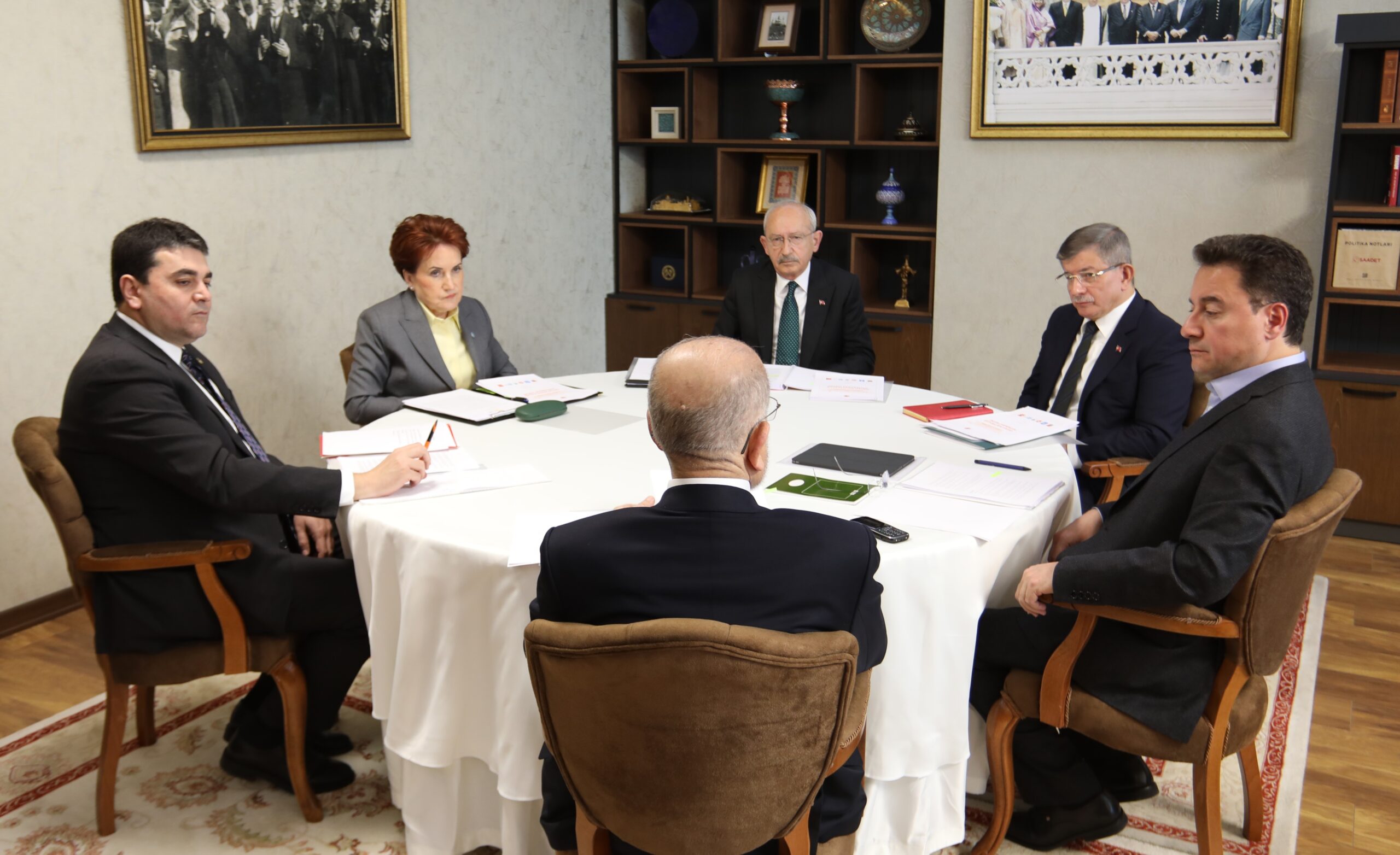CHP Genel Başkanı Kemal Kılıçdaroğlu, İYİ Parti Genel Başkanı Meral Akşener, DEVA Partisi Genel Başkanı Ali Babacan, Gelecek Partisi Genel Başkanı Ahmet Davutoğlu ve Demokrat Parti Genel Başkanı Gültekin Uysal; Saadet Partisi Genel Başkanı Temel Karamollaoğlu tarafından tek tek karşılandı. Toplantı saat 14.00’da başladı.