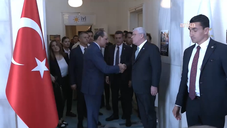 TBMM’de dün sırasıyla MHP Lideri Devlet Bahçeli, AK Parti Genel Başkan Vekili Efkan Ala ve AK Parti Grup Başkanı Abdullah Güler ile DEM Parti Eş Genel Başkanları Tülay Hatimoğulları ve Tuncer Bakırhan’ı ziyaret eden İbrahim Kalın, bugün de İYİ Parti Grubu’na ziyarette bulundu. İbrahim Kalın’ı partinin grup toplantı salonunun kapısında İYİ Parti Genel Başkanı Müsavat Dervişoğlu ile grup başkanvekilleri Buğra Kavuncu ve Turhan Çömez karşıladı.