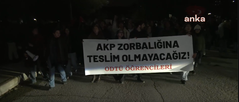 Ekrem İmamoğlu ile birlikte 106 kişinin gözaltına alınması ODTÜ'de binlerce öğrencinin katılımıyla protesto ediliyor.