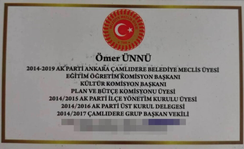 Cumhuriyet’ten Mehmet Oflaz’ın haberine göre; 2014-2019 yılları arası AKP Ankara Çamlıdere Belediye Meclis üyesi, 2014-2015 yılları arası AKP İlçe Yönetim Kurulu üyesi, 2014-2016 yılları arası AKP Üst Kurul delegesi, 2014-2017 yılları arası Çamlıdere Grup Başkanvekili olan Ömer Ünnü AKP’den istifa etti.