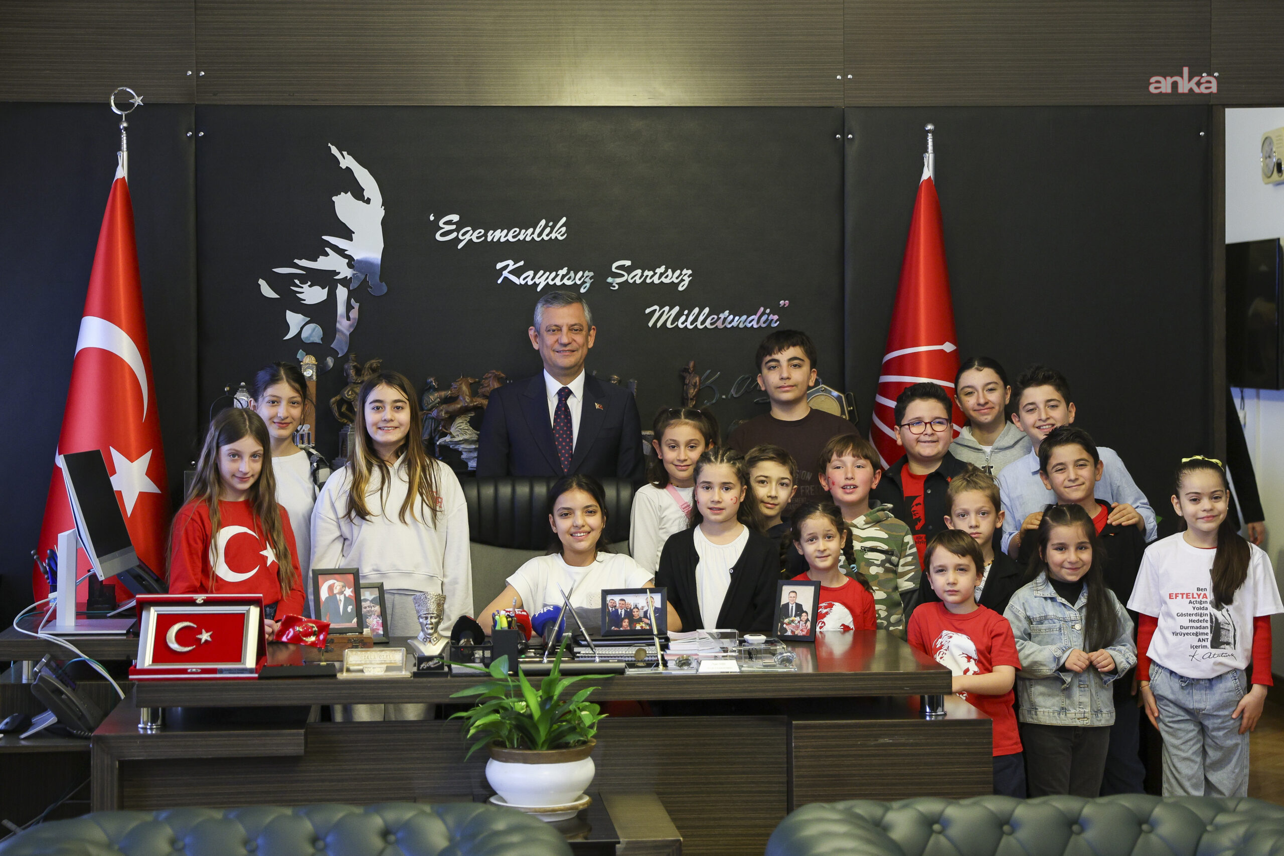 CHP Genel Başkanı Özgür Özel, 23 Nisan Ulusal Egemenlik ve Çocuk Bayramı etkinlikleri kapsamında, TBMM’deki makamında çocuklarla bir araya geldi. Çocuklarla sohbet eden Özel, bayramlarını kutladı. CHP Lideri Özel, 23 Nisan geleneği olarak makam koltuğunu, Hatay Samandağ’dan depremzede 5’inci sınıf öğrencisi Elisa Dok’a devretti.