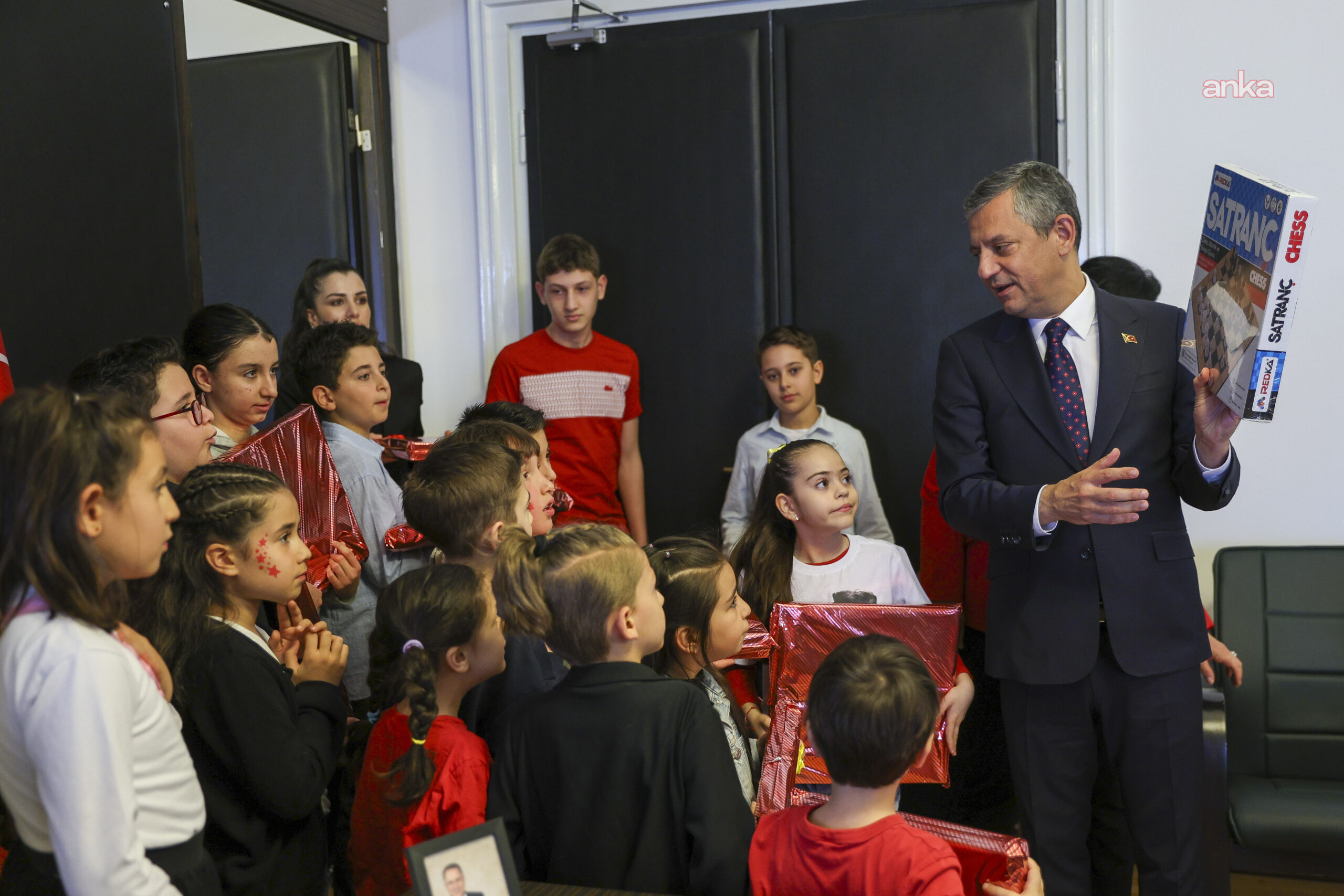 Özel ise Elisa ile Hatay’da düzenlenen mitingde nasıl tanıştıklarını anlattı. Ardından çocuklara satranç takımı hediye eden Özel, çocuklarla fotoğraf çektirdi.