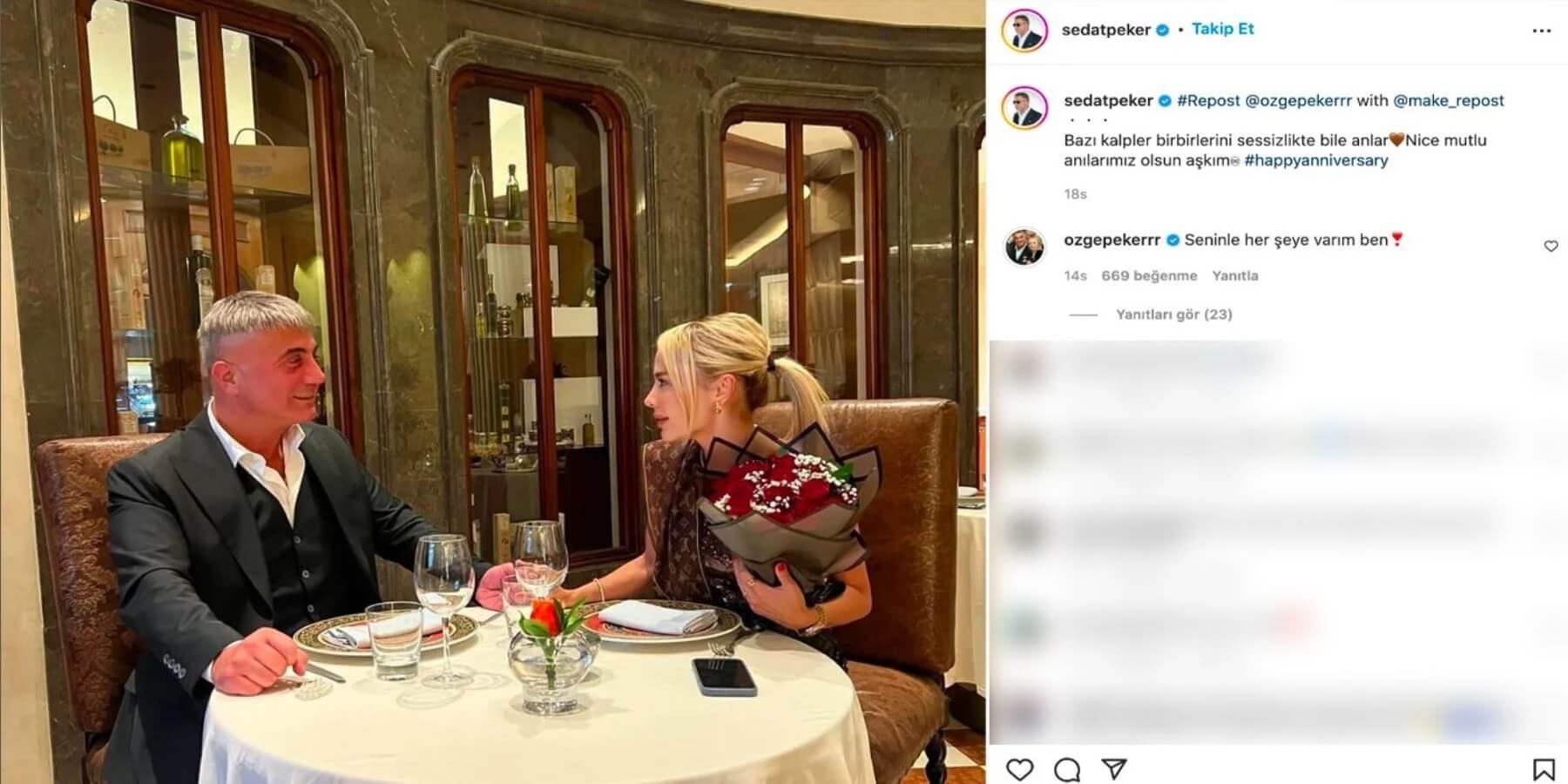 Birleşik Arap Emirlikleri’nde yaşayan ve eşi Özge Peker ile evlilik yıldönümlerini kutlayan Sedat Peker, paylaşımlarının altına “Bazı kalpler birbirlerini sessizlikte bile anlar. Nice mutlu anılarımız olsun aşkım” notunu düştü.
