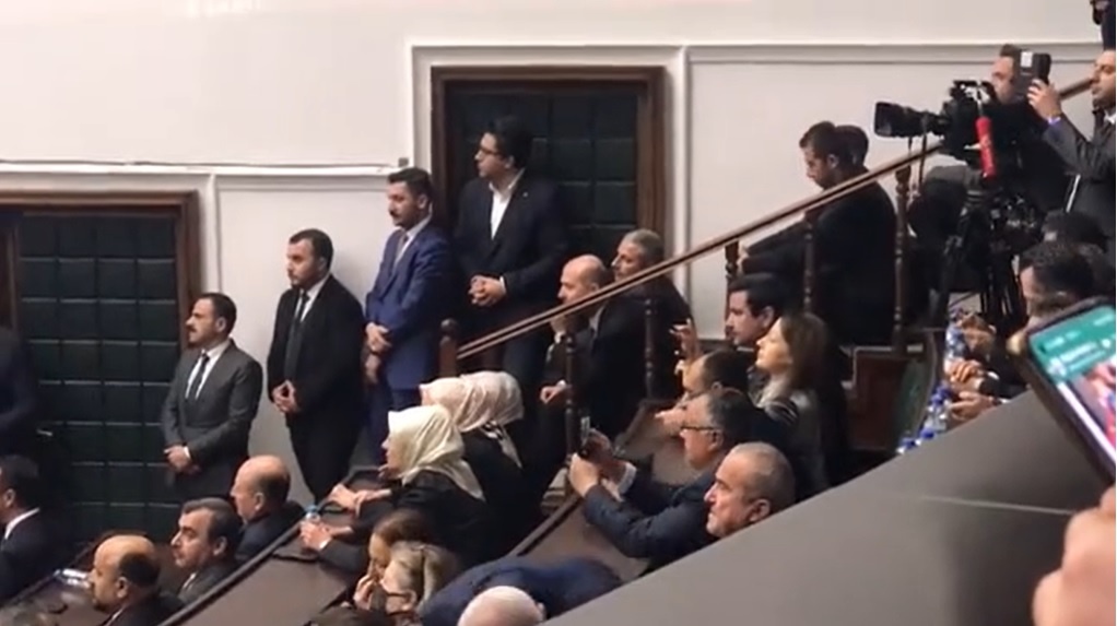 AKP Grup Toplantısı sırasında İçişleri Bakanı Süleyman Soylu, salonda bakanlara ait koltuklarda oturmak yerine merdivende oturmayı tercih etti. Soylu’nun merdivende oturduğu anların videosunu paylaşan gazeteci Özlem Gürses, Soylu’nun bir şeyi protesto ettiğini iddia etti. Gürses’in paylaşımı şöyle oldu: