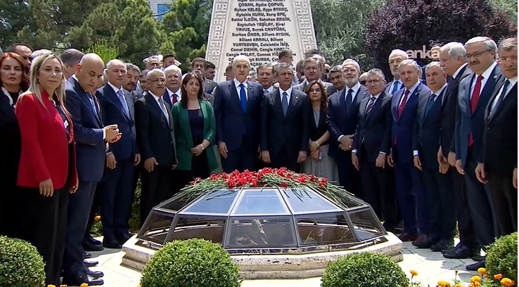 TBMM Başkanı Numan Kurtulmuş, TBMM Camisi’ndeki mevlit programından sonra 15 Temmuz Şehitler Anıtı’ndaki törene geçti. Buradaki törene, CHP Genel Başkanı Özgür özel ve kurmayları da katıldı. TBMM Başkanvekilleri Celal Adan, Pervin Buldan ile AK Parti, CHP, DEM Parti, MHP, İYİ Parti ile Yeni Yol grup başkanvekilleri, milletvekilleri, gaziler, şehit ve gazi yakınlarının hazır bulunduğu törende, Meclis Başkanı Kurtulmuş törene katılanlarla tokalaştı. Daha sonra katılımcılar 15 Temmuz şehitleri için ilk bombanın atıldığı yerde yaptırılan anıta karanfiller bıraktı ve dua okudu. Özgür Özel, buradaki törene katıldıktan sonra TBMM’den ayrıldı.