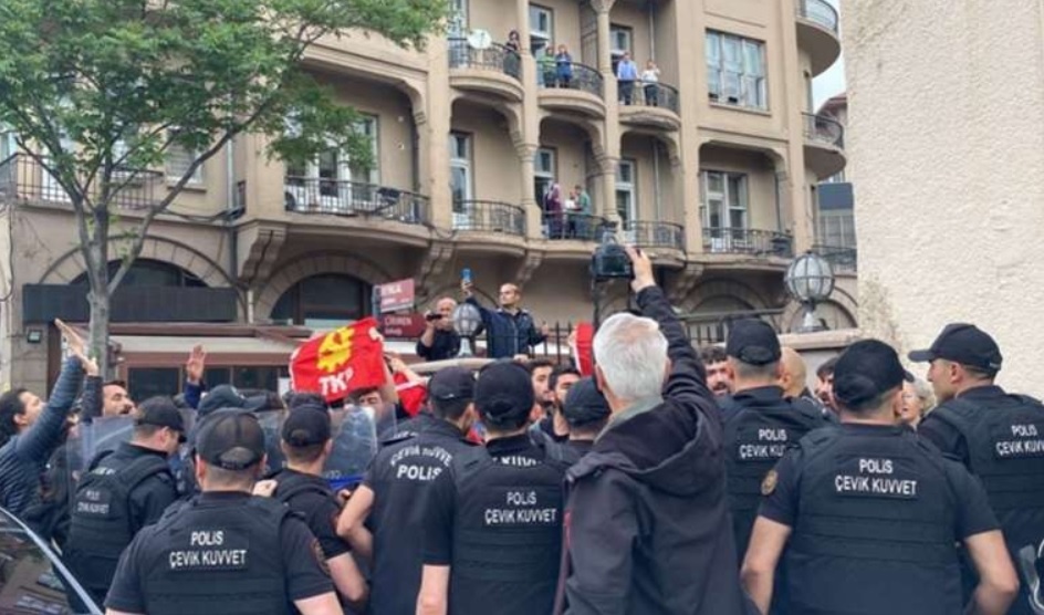 “Boyun eğme, memlekete sahip çık'” sloganlarıyla, Altındağ İstiklal Caddesi üzerindeki Merkez Bankası binası önüne doğru yürüyüşe geçen TKP’lilere polis müdahale etti.