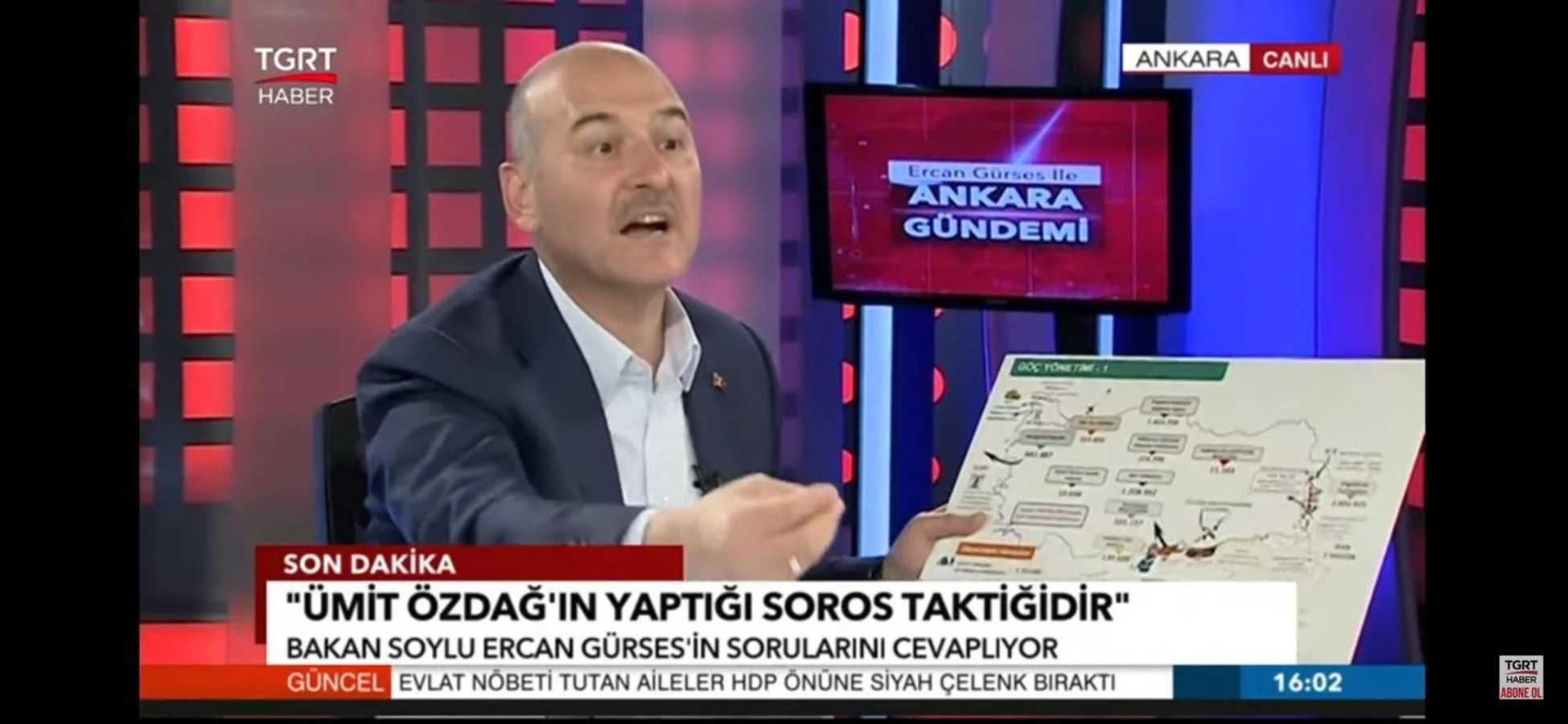 İçişleri Bakanı Süleyman Soylu, TGRT’de Ercan Gürses’in konuğu oldu. Soylu, burada sığınmacılarla ilgili hükümete yöneltilen eleştirilere yanıt verdi.