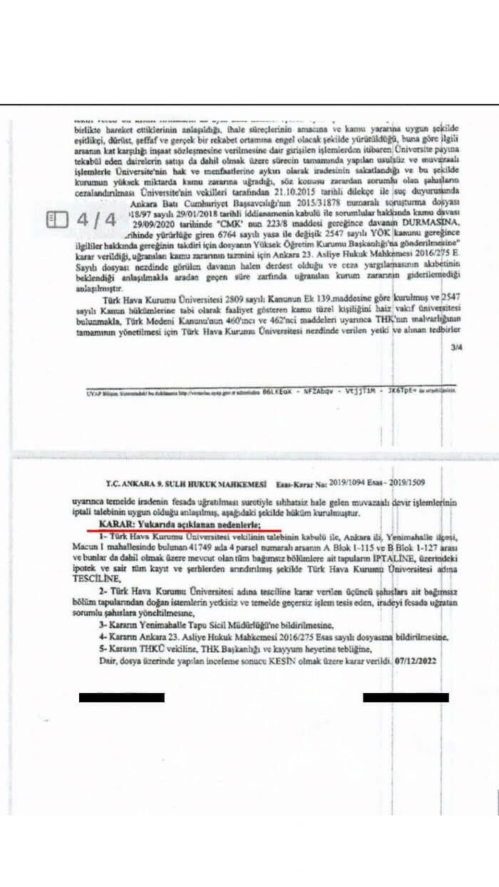 Söz konusu üniversiteye ait arazi satışının birden fazla usulsüzlük içerdiğini ifade eden CHP’li Başarır, “Yapılan bu usulsüzlükler Ankara 9. Sulh Hukuk Mahkemesi tarafından tespit edilmiş ve arazinin üniversiteye geri verilmesi karara bağlanmıştır. Ayrıca üçüncü şahıslara ait bağımsız bölüm tapularından doğan mağduriyetlerin giderilmesi, ihalede yetkisiz ve temelde geçersiz işlem yapan , iradeyi fesata uğratan şahıslara yöneltilmesine karar verilmiştir. Peki bu iradeyi fesata uğratan şahıslar arasında kimler var; tabi ki en başta AKP Erzurum Milletvekili Zehra Taşkesenlioğlu Ban’ın eşi Ünsal Ban var” sözlerini dile getirdi.