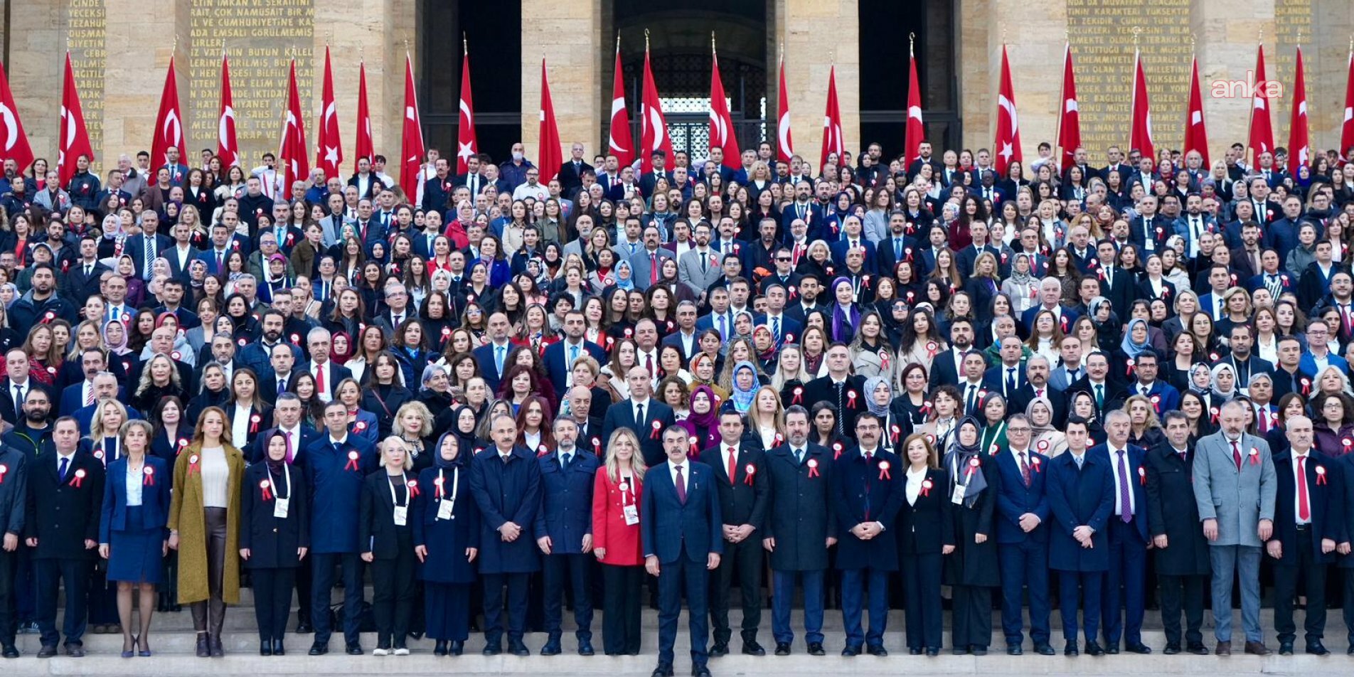 Tekin başkanlığında Bakanlık bürokratları ile öğretmenlerden oluşan heyet, Aslanlı Yol’dan yürüyerek Gazi Mustafa Kemal Atatürk’ün mozolesine ulaştı. Tekin’in mozoleye çelenk bırakmasının ardından saygı duruşunda bulunuldu. Beraberindeki bürokratlar ve öğretmenlerle Anıtkabir merdivenlerinde hatıra fotoğrafı çektiren Tekin, daha sonra Misakımillî Kulesi’ne geçerek Anıtkabir Özel Defteri’ni imzaladı.