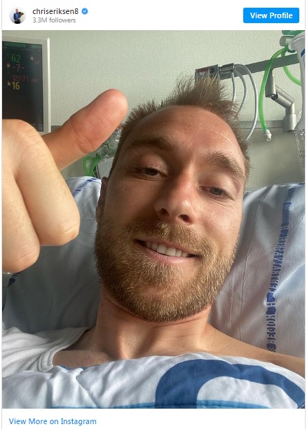 EURO 2020'de Finlandiya maçında yere yığılan ve tüm dünyayı korkutan Danimarkalı futbolcu Eriksen, hastane yatağından yaptığı paylaşımda durumunun iyi olduğunu açıkladı.
