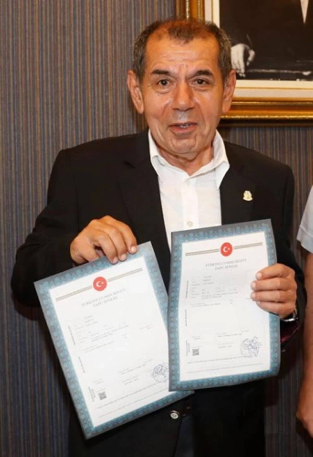 Galatasaray Başkanı Dursun Özbek, Beşiktaş Tapu Müdürlüğü’nde Galatasaray Adası’nın Milli Emlak’ta yer alan parsellerinin tapularını aldı. Dursun Özbek’e, Galatasaray Gayrimenkul A.Ş. Genel Müdürü Mehmet Akif Şener de eşlik ederken öncelikle tapu için imzalar atıldı.