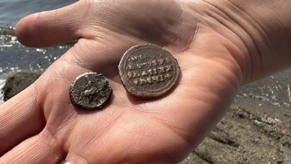 Cisimlerin tarihi sikke olduğunu ve birinin üzerinde Hazreti İsa figürü ile kabartma yazılar olduğunu fark etti.