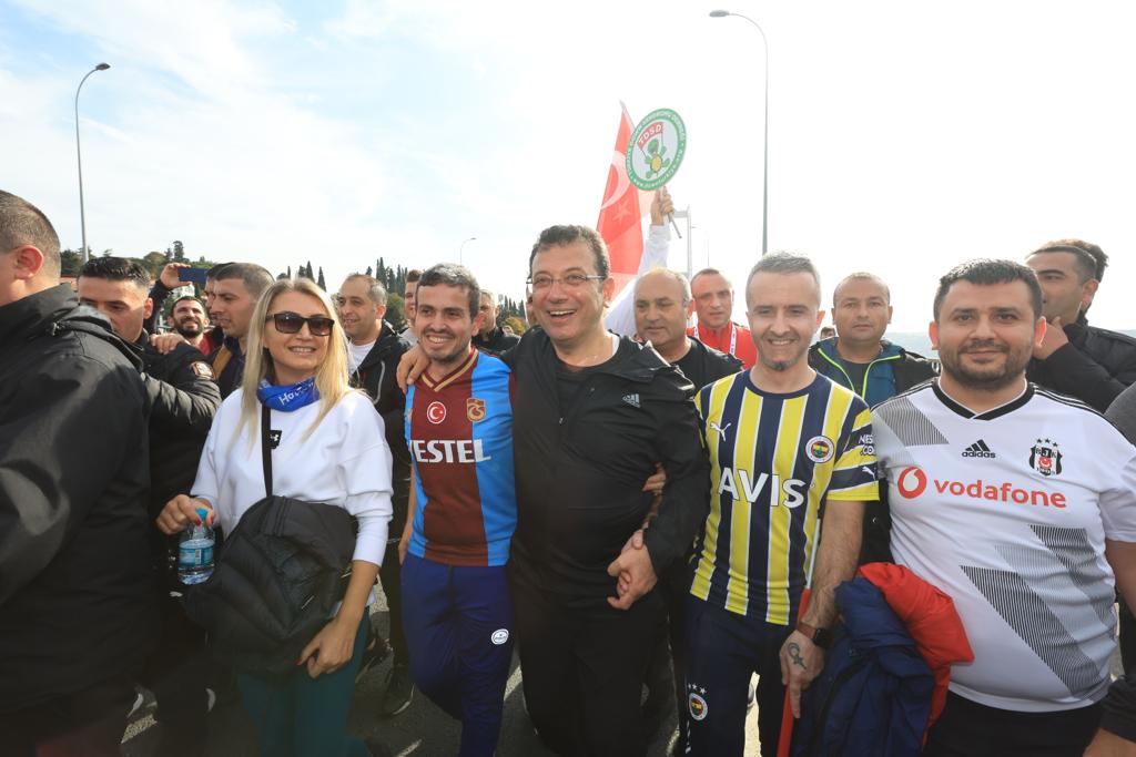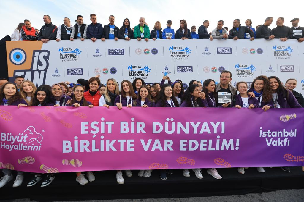 “Hep birlikte İstanbul’a 2036 Olimpiyat Oyunları’nı getirmek istiyoruz” diyen İmamoğlu, “Bu konuda yola çıktık. Bu yolculuğun en dinamik insanları, sizler olacaksınız. Beraber başaracağız. Bugün çok değerli misafirlerimiz var. Balkan şehirlerinin bir kısmı bizimle belediye başkanları bizimle. Onlar da sizi benimle beraber selamlıyor. Onların katılımıyla beraber, bu güzel maratonda bütün dünyaya barışa dair, sevgiye dair, ‘Savaşa Hayır’ diyerek doğayı koruyan, dünyanın göç meselesinin belki de en temel kaynağı iklime dair, iklim krizine dair iş birliği yaptığımızı en büyük şekliyle dile getirerek bu maratonu koşacağız. 21. yüzyılda, barışa dair bu duruşumuzun Türkiye’mize büyük bir moral olduğunun farkındayız. Ülkemiz için koşuyoruz. Bayrağımız için koşuyoruz. Şehrimiz için koşuyoruz. Ama çok önemli bir yıldayız. Aynı zamanda Cumhuriyet’imizin 100’ncü yılı için koşuyoruz” ifadelerini kullandı.