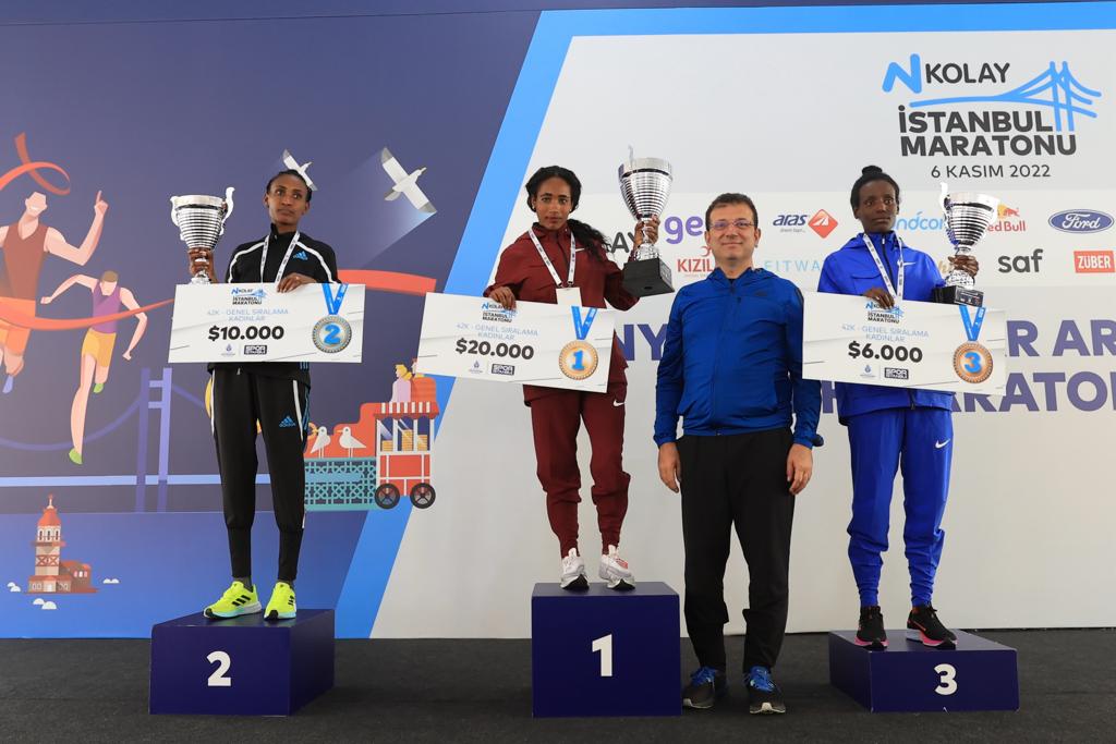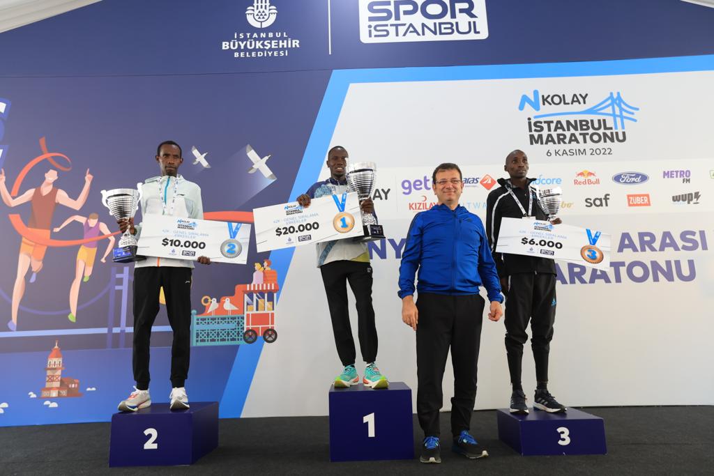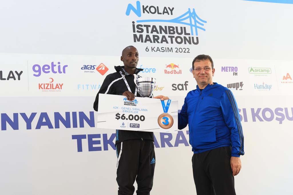 Konuşmaların ardından İmamoğlu, eşi Dilek İmamoğlu ve çocukları Semih ve Beren ile Balkan ülkelerinin belediye başkanları, Altunizade Köprüsü üzerinde başlayan ‘Halk Koşusu’na bir süre eşlik etti. Vatandaşlar, 15 Temmuz Şehitler Köprüsü çıkışına kadar kendilerine eşlik eden İmamoğlu ve beraberindeki heyete, yoğun ilgi gösterdi. Maratonun ödül töreni, Sultanahmet Meydanı’nda gerçekleştirildi. Kulvarında dünyanın en önemli organizasyonlarından biri olan 44. N Kolay İstanbul Maratonu’nu, erkeklerde Kenyalı atlet Robert Kipkemboi, 2:09:37’lik derecesiyle parkur rekoru kırarak kazandı. Kadınlar yarışını ise, Etiyopyalı atlet Sechale Dalasa kazandı. Dalasa, 2:25:52 ile kariyer rekorunu gerçekleştirdi. Şampiyonlara ödüllerini veren ve törende kısa bir konuşma yapan İmamoğlu, İstanbul Maratonu’nda geçmişten günümüze emeği geçen bütün kişi, kurum ve kuruluşlara teşekkürlerini iletti.