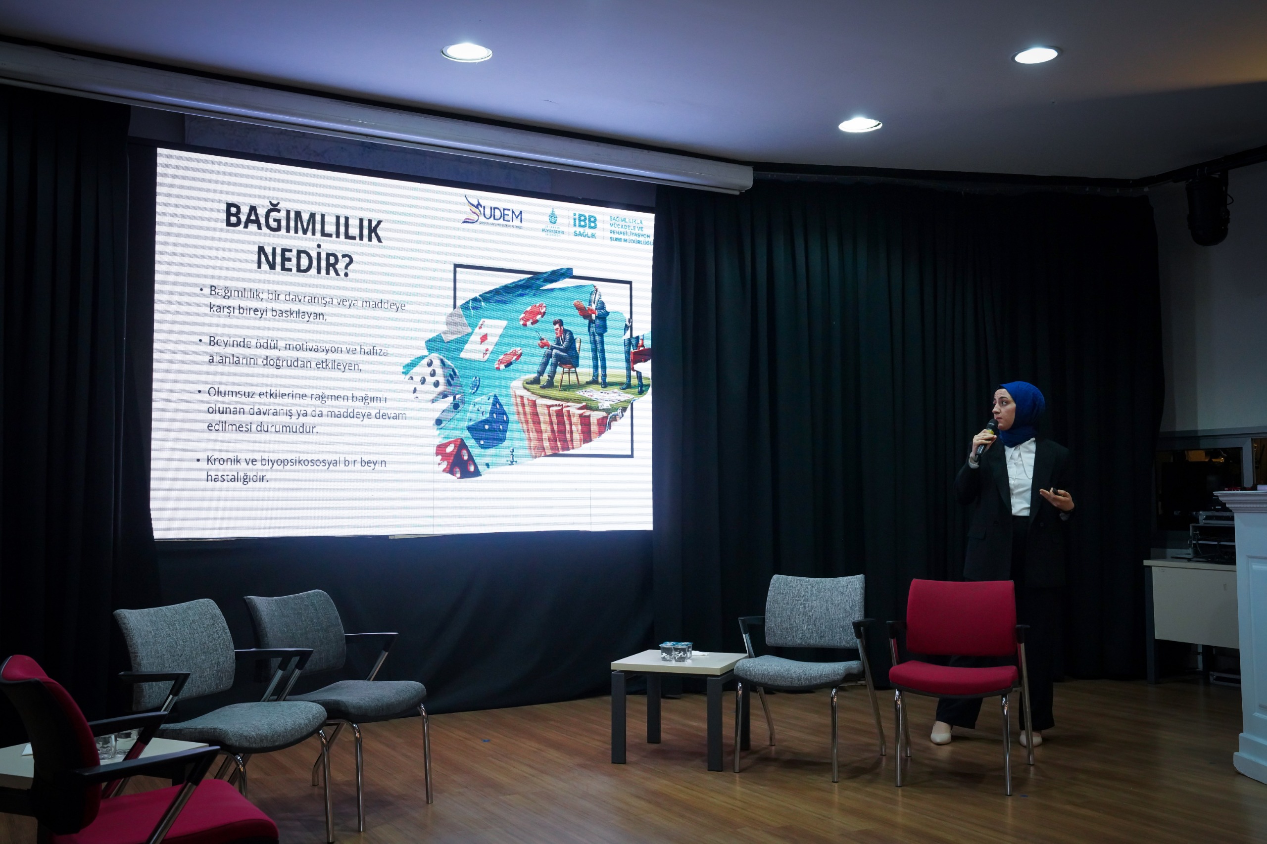 İBB SUDEM Beyoğlu Birim Sorumlusu Ergoterapist Fatıma Akdaş da sahada yürütülen bağımlılıkla mücadele çalışmaları hakkında bir sunum gerçekleştirdi. Etkinlik, katılımcıların sorularının yanıtlandığı soru-cevap bölümüyle sona erdi.