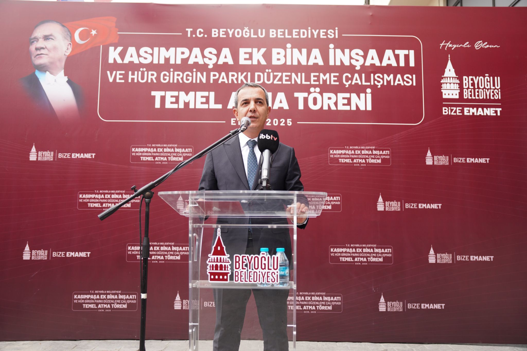 Törende konuşan İstanbul Büyükşehir Belediyesi Başkan Vekili Nuri Aslan, yapılan çalışmaların önemine dikkat çekerek “Bugün Beyoğlu Belediyesi temelini attığı Kasımpaşa Ek Hizmet Binası ve Hür Girgin Parkı da gösteriyor ki,  başkanlarımız Silivri zindanlarında olsa bile çalışmaya devam ediyorlar. Onların kurdukları hayal bizler ve sizler sayesinde yaşama geçiyor.  Biliyorum ki, ne Ekrem başkanımız ne de İnan başkanımızın gözü arkada değil. Çünkü onların arkasında millet var. Çünkü onların emanetlerine sahip çıkan kardeşleri var. Onların bizlere bıraktığı bu emaneti onunla taşıyoruz ve taşımaya devam edeceğiz. Tam da bu yüzden bugün burada yükselen bu temel sadece bir bina temeli değildir. Bu temel adaletin, eşitliğin ve kardeşliğin temelidir. Bu temel, İstanbul herkesin diyen bir anlayışın temelidir.” dedi.