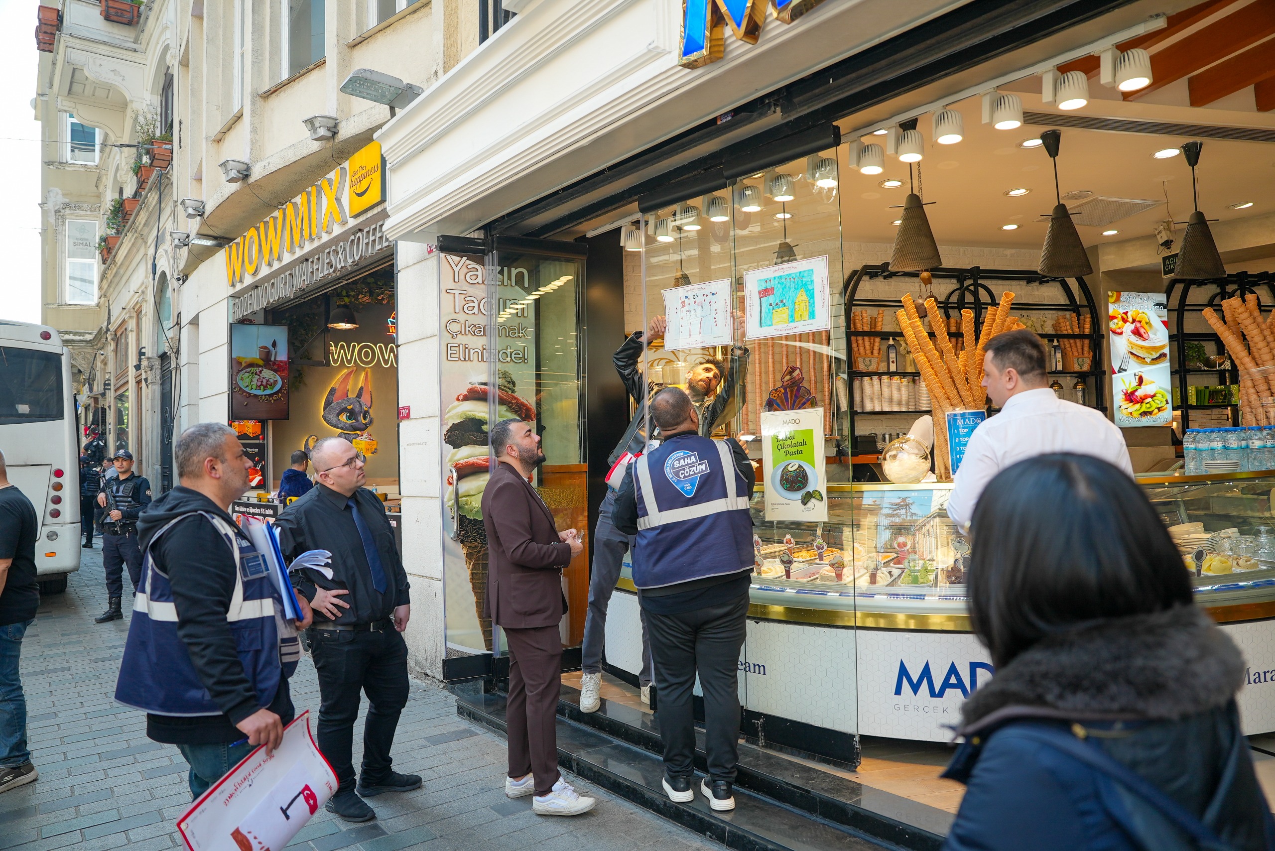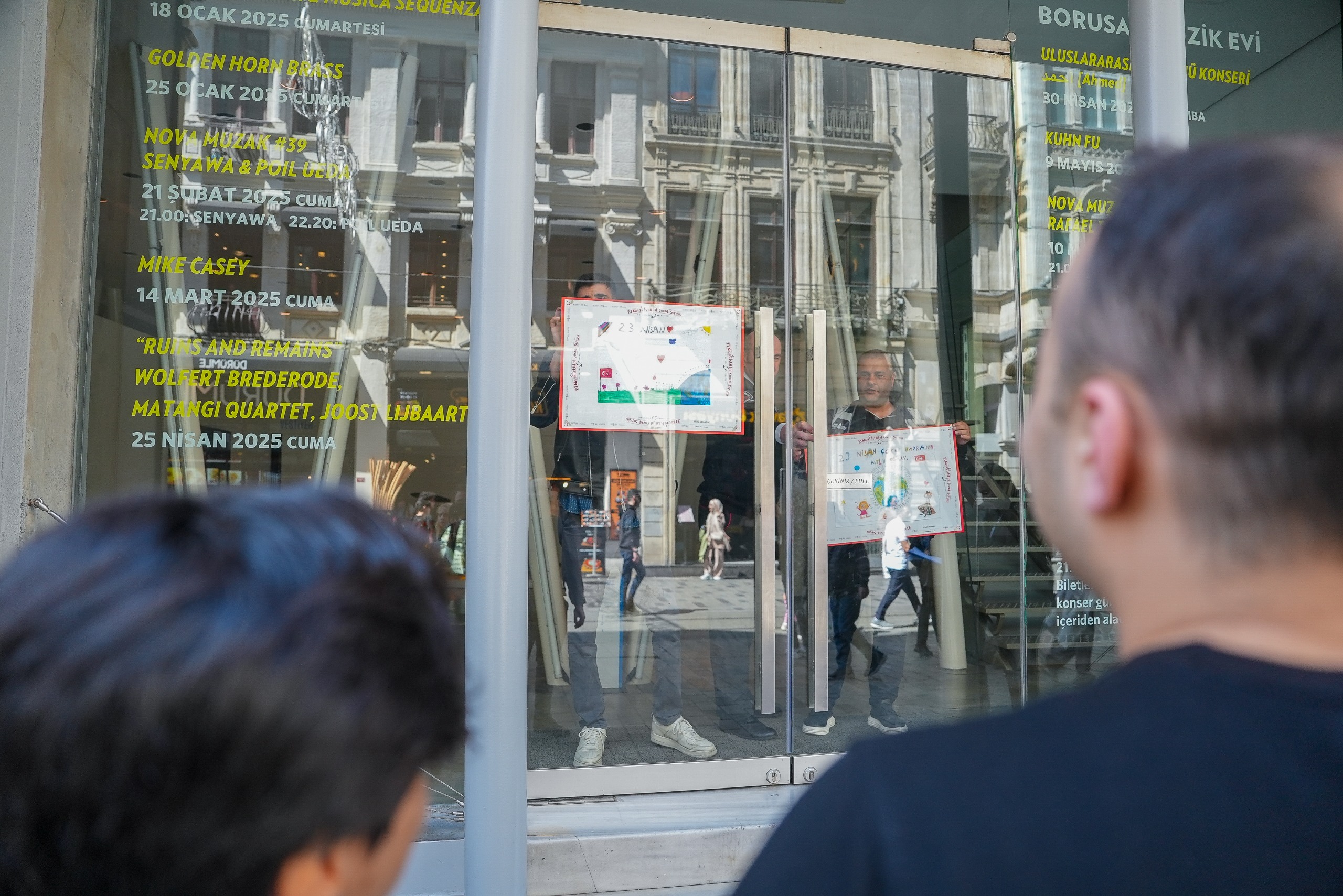 Beyoğlu'nun vitrini İstiklal Caddesi 23 Nisan'da çocukların çizdiği resimlerle rengarenk oldu. Çocukların hayal dünyasını yansıtan resimlerden oluşan sergi, cadde esnafının desteğiyle açık hava sergisine dönüştü.