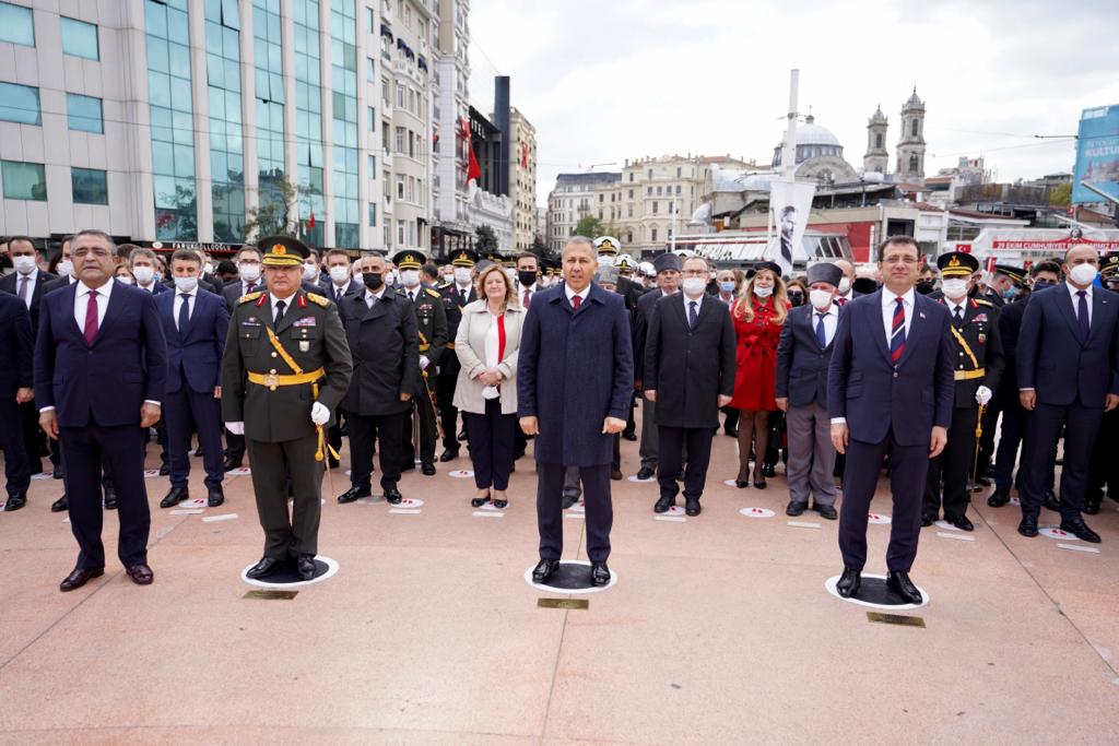 CHP Grup Başkanvekili Engin Altay ve İstanbul milletvekili Sezgin Tanrıkulu’nun da hazır bulunduğu tören; Atatürk, silah arkadaşları ve tüm şehitler için saygı duruşunda bulunulması, ardından İstiklal Marşı’nın okunmasıyla başladı. Daha sonra sırasıyla Yerlikaya, Avsever ve İmamoğlu, tören mangası eşliğinde Atatürk Anıtı’na çelenk koyarak, saydı duruşunda bulundu. Çelenklerin konulmasının ardından resmi tören sona erdi.