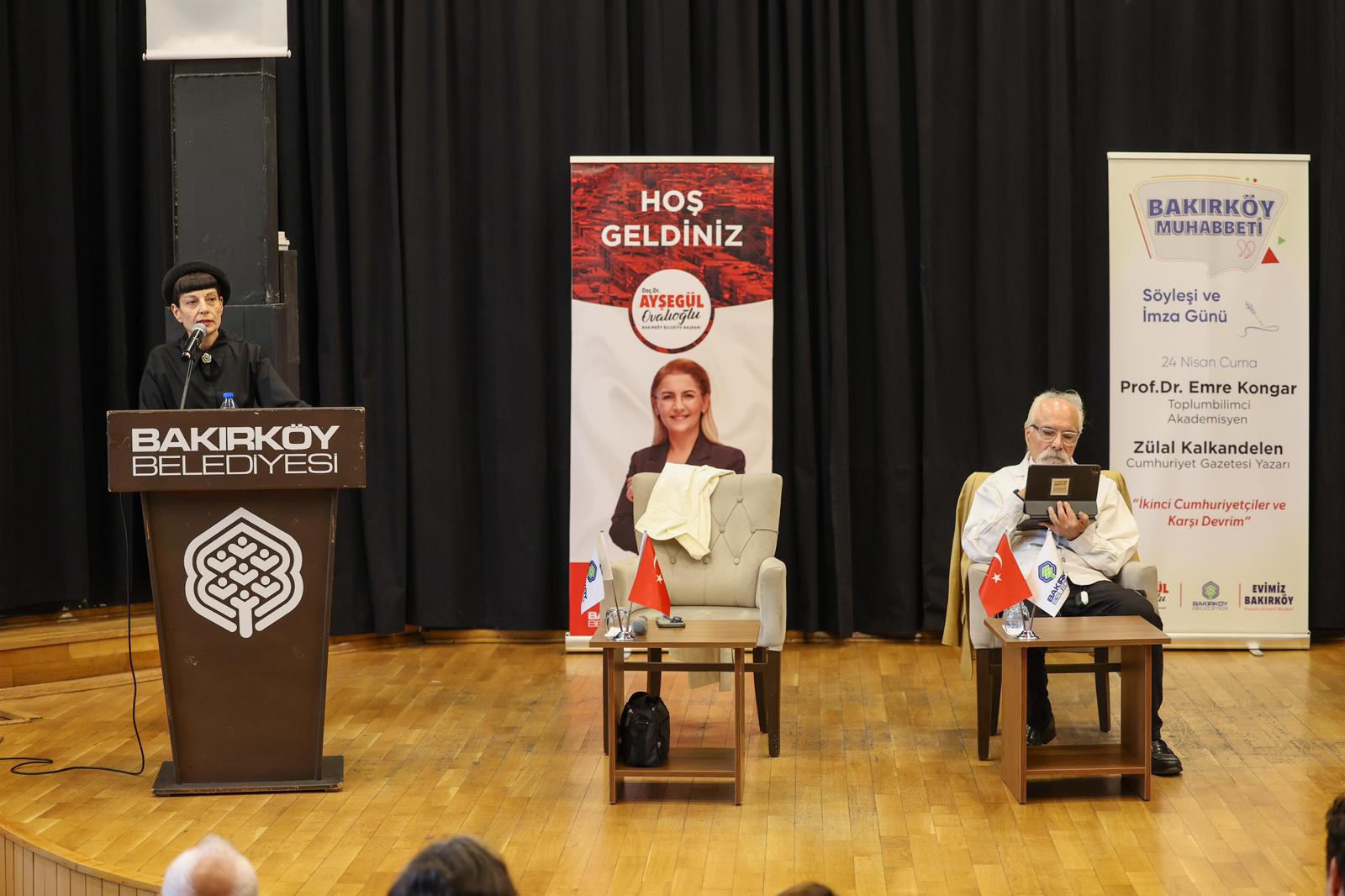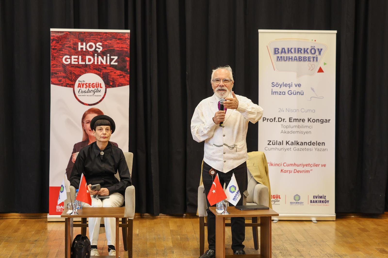Bakırköy Belediyesi’nin her Cuma İspirtohane Kültür Merkezi’nde düzenlediği “Bakırköy Muhabbeti” söyleşilerinin bu haftaki konuğu Toplumbilimci ve Akademisyen Prof. Dr. Emre Kongar ve Cumhuriyet Gazetesi Yazarı Zülal Kalkandelen oldu. “İkinci Cumhuriyetçiler ve Karşı Devrim” isimli söyleşinin ardından konuklar kitaplarını okuyucuları için imzaladı.