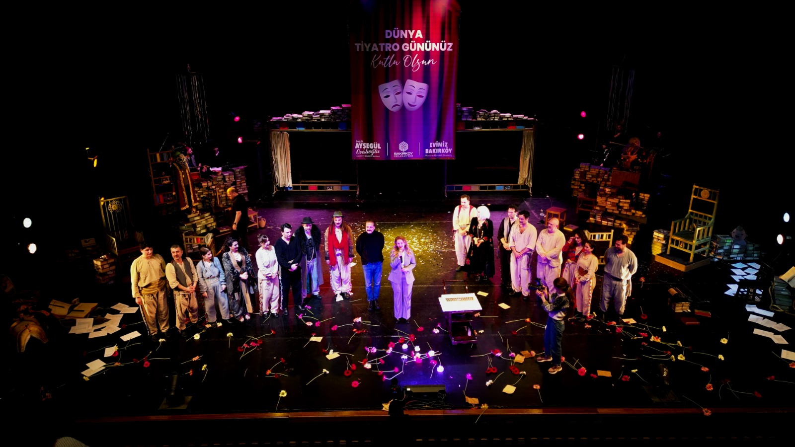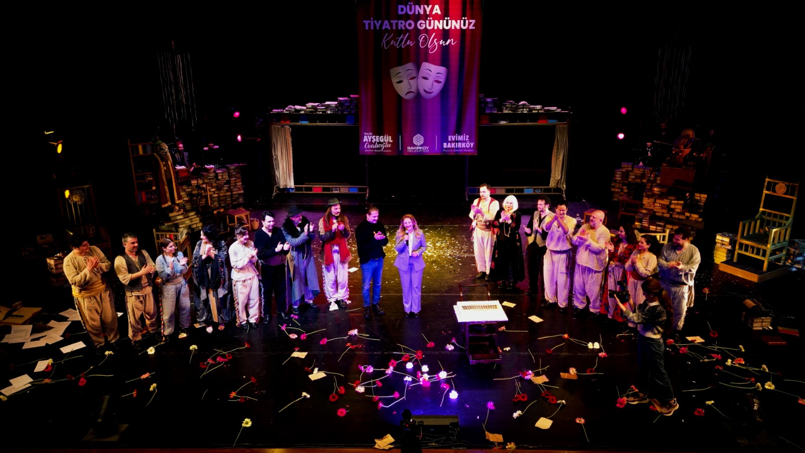 Dünya tiyatro gününde sahne çiçek bahçesine döndü, Bakırköy belediye tiyatrolarına muhteşem kutlama