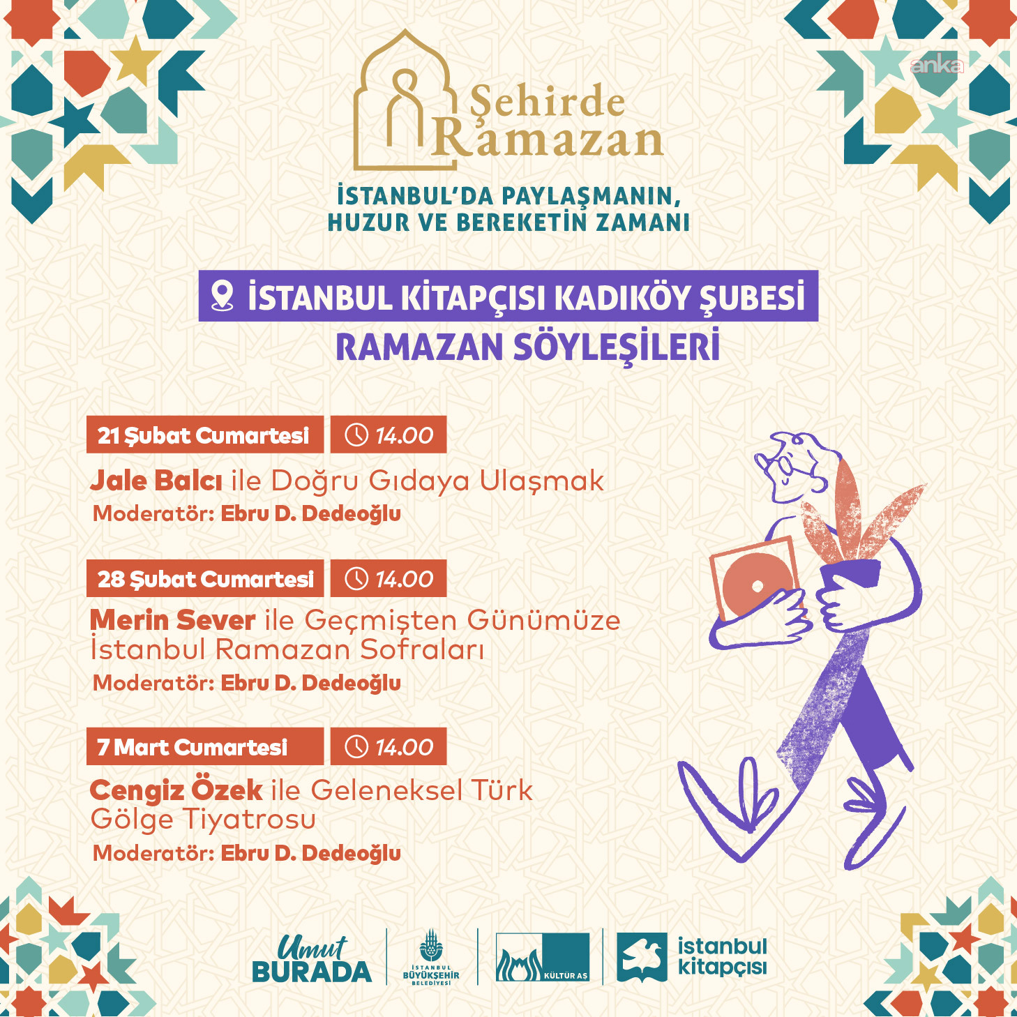 İBB yetkililerinden yapılan bilgilendirmeye göre, Ramazan etkinlikleri Bağcılar, Üsküdar ve Beykoz meydanlarında kurulacak çadırlarla gerçekleştirilecek. Kültür merkezlerinde konserler, söyleşiler, tiyatrolar ve çocuk etkinlikleri düzenlenecek. Artİstanbul Feshane, Sultanahmet Turşucuzade Konağı ve çeşitli kültür merkezlerinde tasavvuf dinletileri, geleneksel gösteriler ve atölyeler Ramazan boyunca İstanbullularla buluşacak. İBB Orkestraları, konser programlarıyla Ramazan atmosferine katkı sunacak.