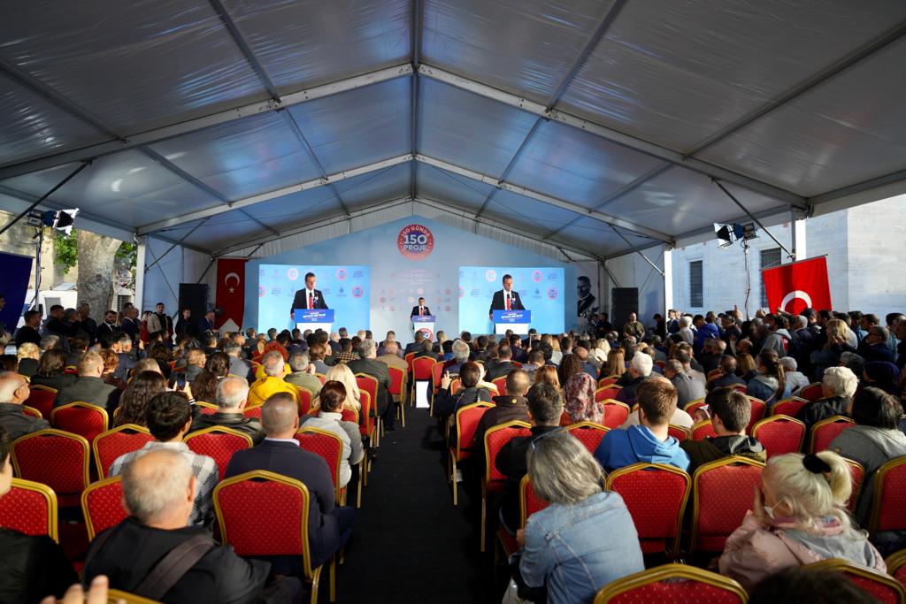 “Eşit ve özgür vatandaşlar ülkesi olmalıyız” diyen İmamoğlu, “Adil, rekabete dayalı, insanların bir arada huzur içinde yaşadığı ve o huzuru gelen misafirlerine hissettirdiği, o mutluluğu, o derinliği, o kültürel çeşitliliği, o etnik çeşitli hissettirdiği bir toplum olmayı başarmalıyız. Bunları da bu tür yaşam alanlarımızla tam anlamıyla hissettirebiliriz. Elimizde her şey var. Lütfen hep birlikte bu işi başaralım. İstanbul’u gerçekten hak ettiği değere hep birlikte kavuşturalım. ‘150 Günde 150 Proje’ tam da böyle bir sürecin odağında bir kampanyadır. Bu güzel tarihi meydan, Beyazıt Meydanı, çevresindeki bütün güzellikleriyle vatandaşlarımıza ve İstanbul’un bütün misafirlerine, turistlerine, bütün dünyaya hayırlı uğurlu olsun” şeklinde konuştu.