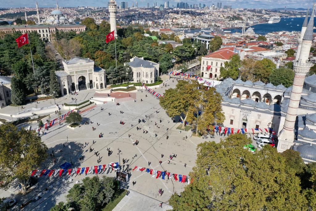 “Burada 3000 yıllık kimlik var. Üç imparatorluğun başkentliğini yapmış, neredeyse 200 yıllık şahitlik şahitlikleriyle hem de tam bu alanlarda, bizim demokrasi tarihimiz var. Bizim Cumhuriyet’imizin tohumları var, düşünceleri var. Tabii ki 1453 yılında Fatih Sultan Mehmet’in milletimize emanet ettiği İstanbul var. Tabii ki 5 yıl işgalden burayı kurtararak Mustafa Kemal Atatürk’ün tekrar o emaneti kurtarıp, bize emanet ettiği İstanbul var. Ama aynı zamanda bütün tarihsel geçmişiyle bize emanet İstanbul’u koruyarak, geliştirerek, ‘Dünyanın en güzel yerini, vitrine koyarak bütün dünyaya anlatmayı ve milyonlarca turisti bu şehrin tam da bu noktasına davet etmeyi, çekmeyi başarmak istiyoruz’ diyerek yola çıktık. Bu derin bir vizyon. Süleymaniye’de yapılan yanlışların düzeltilmesi var bu işin içerisinde. Kötü, metruk alanların gerçek o tarihi kimliklerine dönüştürülmesi var. Ve aynı zamanda çok kötü yapıların ele alınıp, gerekiyorsa istimlakla, gerekiyorsa hakkını vererek, gerekiyorsa hukuki işlemlerini yapıp, yıkarak gerçek kimliğine İstanbul’un bu tarihi yarımadasını çevirmek, döndürmek; işte o saydığım ‘Atamız’ dediğimiz, ‘Ceddimiz’ dediğimiz, bize emanet eden insanlara karşı layık olmanın gereğidir diye düşünüyorum.”