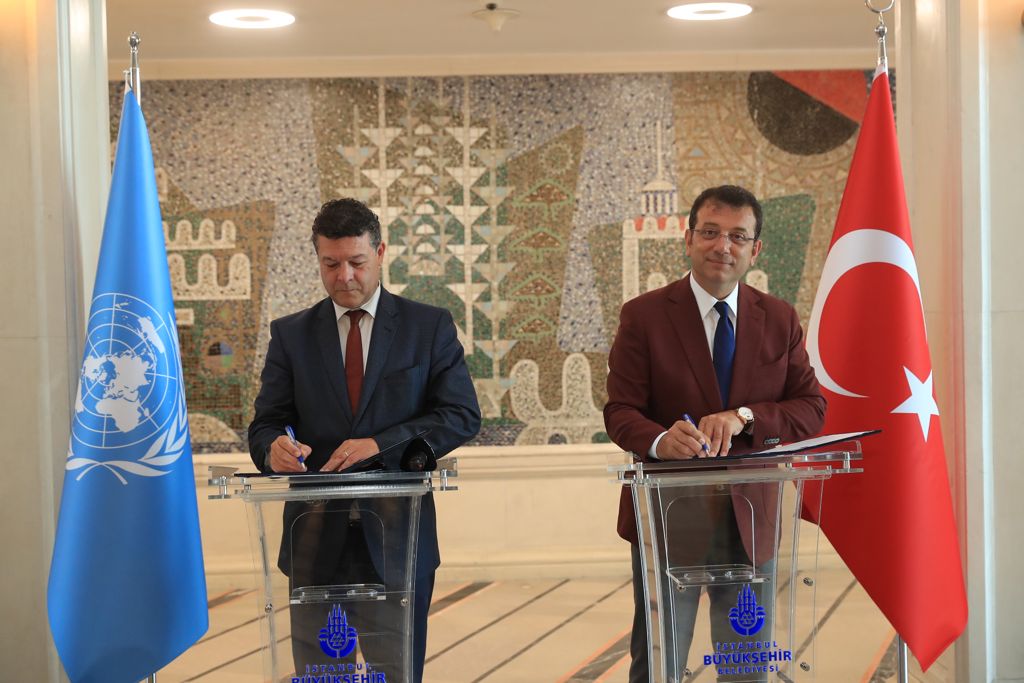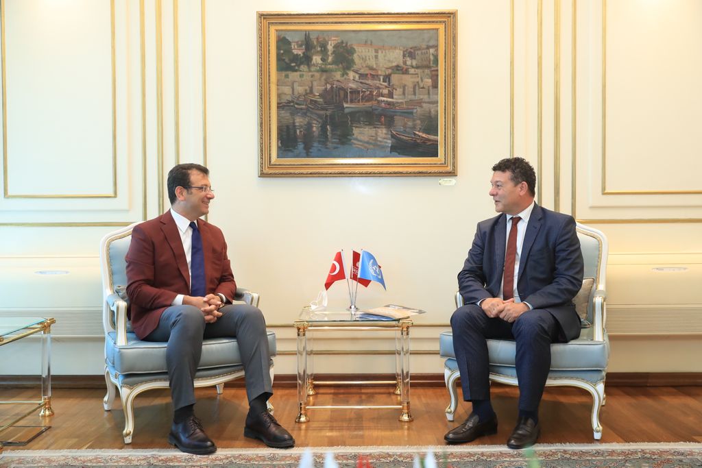 İstanbul Büyükşehir Belediyesi (İBB) ile Birleşmiş Milletler Mülteciler Yüksek Komiserliği Ofisi Türkiye Temsilciliği (UNHCR) arasında iş birliği mutabakat metni imzalandı. İBB Başkanı Ekrem İmamoğlu, UNHCR Türkiye Temsilcisi Philippe Lecrec ve ekibini, Saraçhane’deki makam odasında ağırladı. İmza töreni öncesinde gerçekleşen buluşmada İmamoğlu’na; İBB Genel Sekreter Yardımcısı Şengül Altan Arslan, Sosyal Hizmetler Daire Başkanı Yavuz Saltık ve Dış İlişkiler Daire Başkanı Mehmet Alkanalka eşlik etti. Karşılıklı görüşlerin dile getirdiği görüşmenin ardından mutabakat metni imzalama törenine geçildi.