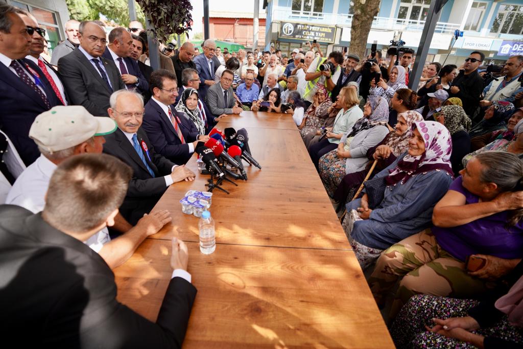 Kılıçdaroğlu, İmamoğlu ve beraberlerindeki heyetin Silivri’deki son durağı, Değirmenköy Meydanı oldu. Kılıçdaroğlu ve İmamoğlu, burada yaptıkları konuşmaların ardından, “Ekmeklik Buğday Tohumu ve Mazot Desteğiyle Üreticinin Yanındayız” etkinliğine katıldı. Etkinlikte konuşan Kılıçdaroğlu, tarıma desteği nedeniyle İBB’ye ve İmamoğlu’na teşekkürlerini iletti. “Ekrem Başkan’ı dinlediniz. Gerçekten de İstanbullunun rahat etmesi için ister kırsalda, ister şehir merkezinde olsun, herkesin İstanbul’da huzur içinde yaşaması için elinden gelen bütün çabayı gösteriyor” diyen Kılıçdaroğlu, “O nedenle hepinizin huzurunda Ekrem Başkan’a teşekkür etmek, benim de görevimdir. Hakkını yemeyelim; diğer belediye başkanlarımızla aynı şekilde çalışıyorlar. Nitekim Ekrem Başkan da bunu vurguladı. Engel çıkarıyorlar; biliyorum. Engeller devam ediyor; bunları da biliyorum. Ama arkadaşlarıma şunu söyledim: Hangi engeli çıkarırlarsa çıkarsınlar, şikayet etmeyeceksiniz. Engeli aşacaksınız ve vatandaşla kucaklaşacaksınız. Onların taleplerini yerine getireceksiniz” şeklinde konuştu.