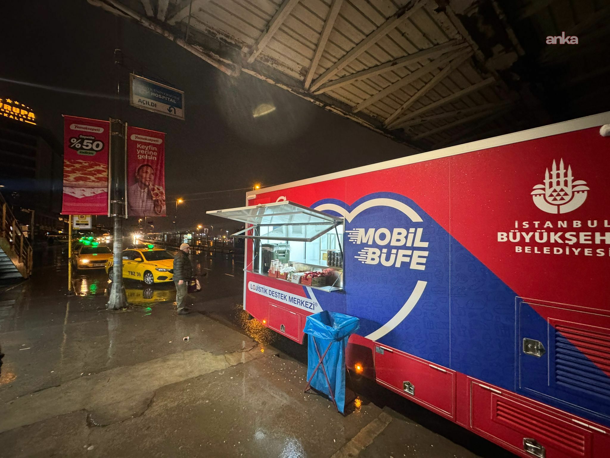 İBB İşletmeler Müdürlüğü Lojistik ekipleri, ulaşım ağı üzerindeki 10 kritik noktada vatandaşlara sıcak içecek, çorba, kek ve su dağıtımı yapıyor. Dağıtım noktaları arasında Yenikapı, İTÜ Ayazağa, Zincirlikuyu, Mecidiyeköy, Cevizlibağ, Kadıköy ve Beşiktaş iskeleleri yer alıyor.