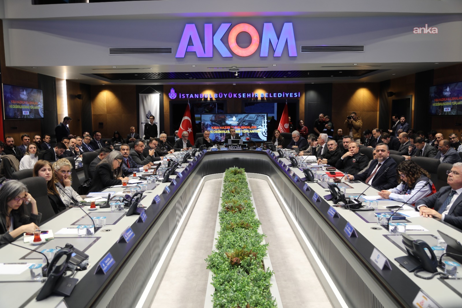 İBB Afet İşleri Dairesi Başkanlığı’nda (AKOM) yapılan toplantıya, İBB Genel Sekreteri Prof. Dr. Volkan Demir başkanlık etti. İBB Genel Sekreter Yardımcıları ve ilgili birimlerin yanı sıra Emniyet, AFAD, Jandarma, Karayolları, Kuzey Marmara Otoyolu, Avrasya Tüneli İşletmesi, İstanbul Havalimanı İşletmesi (İGA), Sabiha Gökçen Havalimanı İşletmesi (HEAŞ) kurumlarının yetkilileri de toplantıda hazır bulundu.