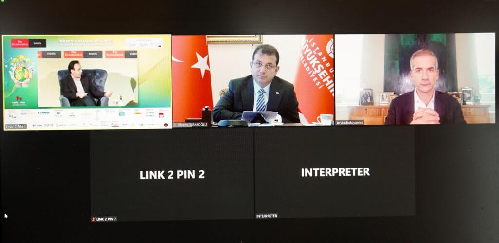 İstanbul Büyükşehir Belediye (İBB) Başkanı Ekrem İmamoğlu, Londra merkezli “The Economist” dergisi tarafından düzenlenen “5. Sürdürülebilirlik Zirvesi”ne katıldı. İmamoğlu; Atina Belediye Başkanı Kostas Bakoyannis, Yunanistan Belediyeler Birliği (KEDE) Başkanı ve Trikala Belediye Başkanı Dimitris Papastergiou ile WIND Hellas Kurumsal İlişkilerden Sorumlu İcra Direktörü George Tsaprounis’un yer aldığı zirveye, çevrimiçi katılım sağladı. Zirvede, “Kovid-19 dönemi sonrası sürdürülebilir şehirler” konusu ele alındı. Zirve katılımcısı konuklara; “Şehirler, sürdürülebilirliğin sağlanmasında ulusal hükümetin oynayamayacağı hangi rolü oynayabilir” ve “Şehir düzeyinde uluslararası iş birliği, iklim değişikliğine yönelik küresel çabaları nasıl geliştirebilir” soruları yöneltildi.