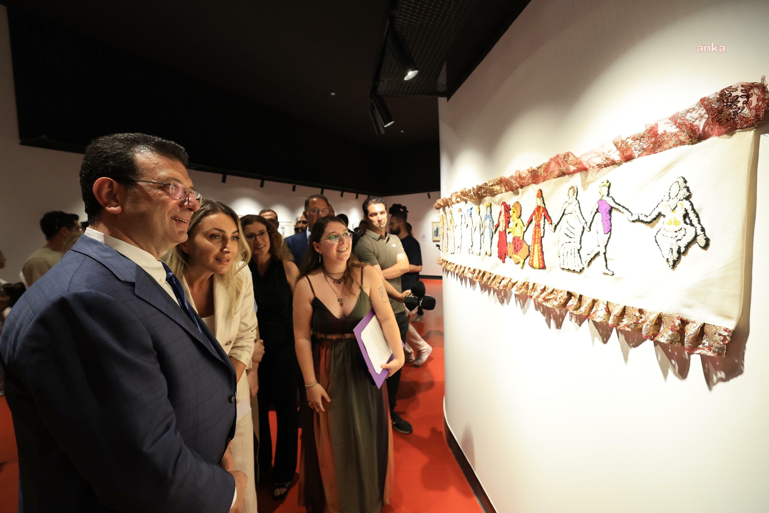 500 yüze yakın katılımın olduğu bir yarışmadan bahsediyoruz. Benim için çok değerli. İçeride de 30 eser sergilenecek. 30 sanatçı ve sanatçılarımız, genç sanatçılarımızın katılımın da öyle olduğunu öğrendim. Böyle bir kadın erkek eşit yoğunluğuyla katılmaları ve bu sürecin içinde olmaları beni çok çok mutlu etti. Emek veren çok değerli jüri üyelerimize açıkçası yürekten teşekkür ediyorum. Bütün bu yönüyle beraber inşallah birazdan içeride heyecanla 30 eseri göreceğiz ve gururlanacağız. Biz bu yolculuğu başta tariflerken buranın en titiz şekilde hazırlanmasıyla nasıl yönetici yönetileceğiyle ilgili nasıl bir mekan olacağı, insanlarla buluşacağı, çocuklara, gençlere ilham vereceği noktasında gerçekten çok özel düşüncelere başvurduk. Bir arada konuştuk, hep beraber düşündük. Bu yönde attığımız adımlarda hep beraber konuşup, beraber yol aldığımız bu değerli mekanın oluşumunda sevgili eşime Dilek İmamoğlu’na hem bir sanatsever olarak bir Ekrem sever olarak teşekkür ediyorum, onu söyleyeyim yani. Serginin önünde bile durunca insana ilham geliyor böyle. Yapacak bir şey yok. Ben de Dilek sever olarak burada bulunmaktan elbette mutluyum.