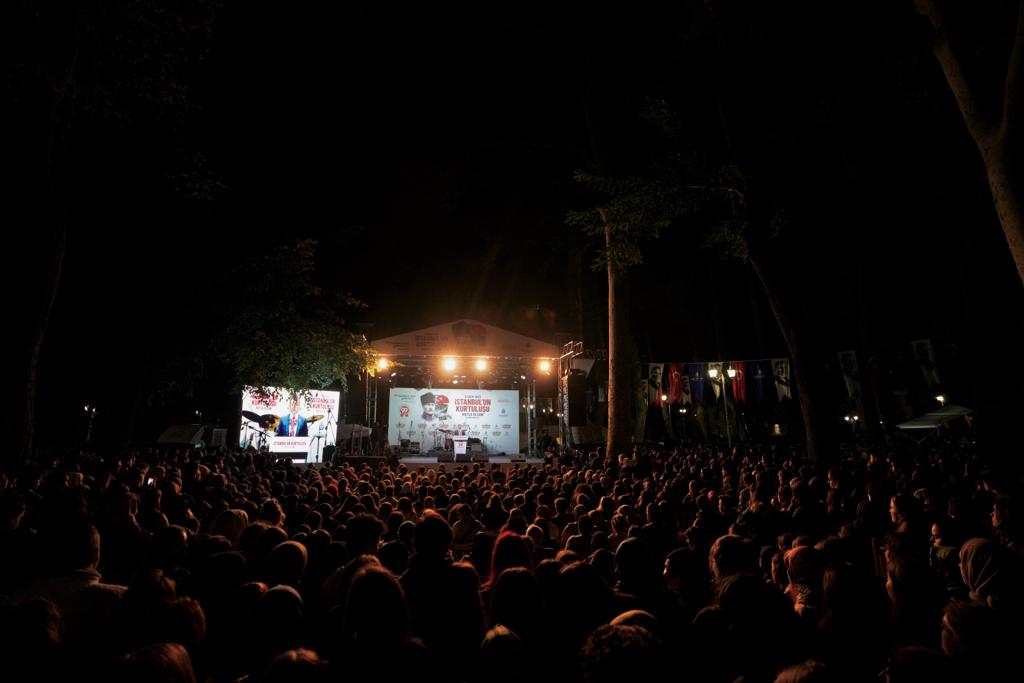 “100 yıl önce, bu şehir ve bu ülke işgalden kurtulsun diye canlarını ortaya koyanlar, gençlerimiz başka ülkelerde kendilerine gelecek aramak durumunda kalsın, bu topraklardan umudu kesip yaban ellere mahkum olsunlar diye asla şehit olmadılar” diyen İmamoğlu, “Bütün bu mücadeleler, bu ülkenin insanları, kendilerini yokluk ve yoksulluk içerisinde hissetsinler, güvensiz ve birbirimizle kutuplaşmış gibi hissetsinler diye verilmedi. En ufak bir endişeniz olmasın; Türkiye Cumhuriyeti’nin kurtuluş ve kuruluş mücadelesinin değerini bilmeyenler, anlamını kavrayamayanlar milletin iradesini hiçe sayan anlayışlar, geldikleri gibi giderler. Kurtuluşun kutlu olsun İstanbul. Daima mutlu ol İstanbul. İstanbul’un kurtuluşu kutlu olsun” dedi.