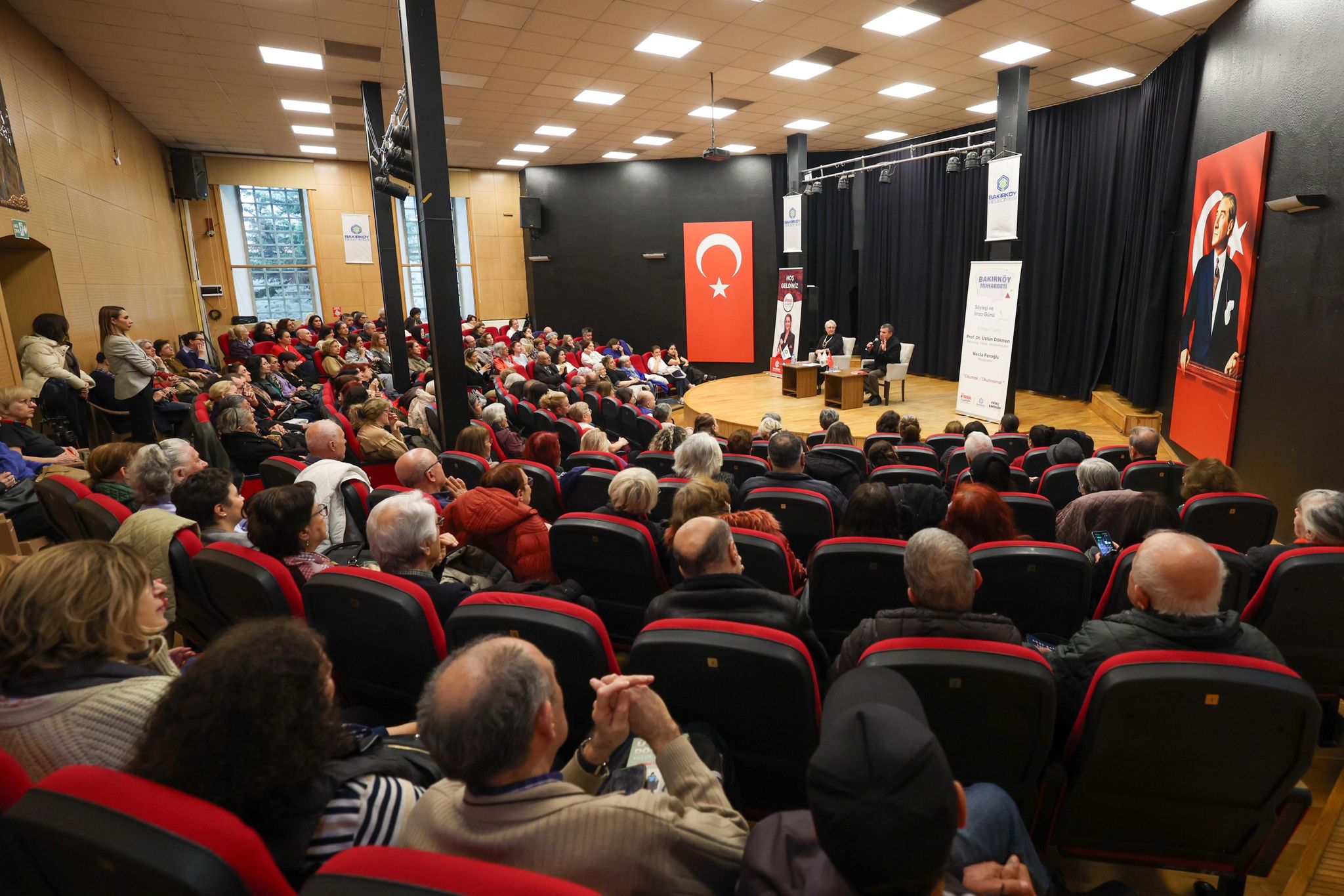 Bakırköy Belediyesi’nin her Cuma İspirtohane Kültür Merkezi’nde düzenlediği “Bakırköy Muhabbeti” söyleşilerinin bu haftaki konuğu Psikolog, Yazar ve Akademisyen Prof. Dr. Üstün Dökmen oldu. Editör Necla Feroğlu’nun moderatörlüğünü yaptığı “Okumak, Okutmamak” isimli söyleşinin ardından Dökmen kitaplarını okuyucuları için imzaladı.